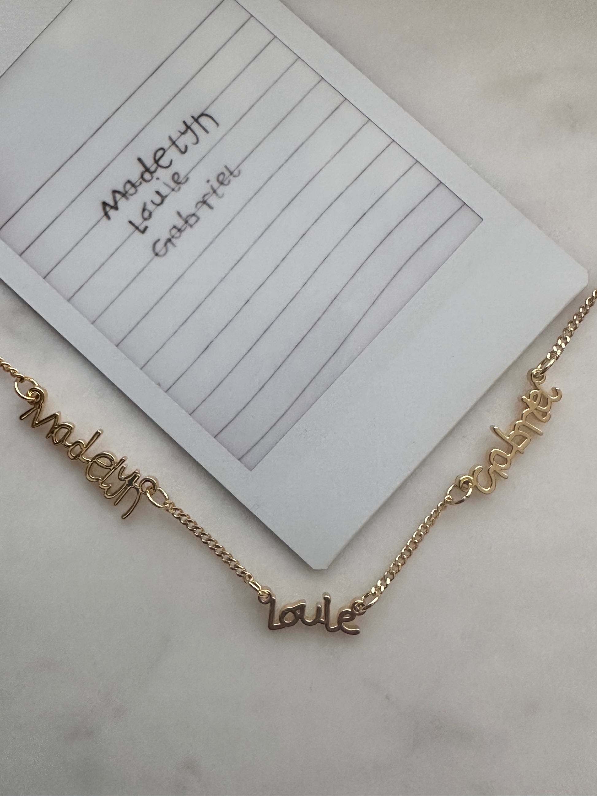 My beautiful necklace created by Bijou By You that features my sons’ handwritten names, is one of the most meaningful pieces I own!! It perfectly replicates their exact handwriting, turning something so personal into a stunning piece of jewellery. The sentimental value it holds is beyond words—it’s like carrying a piece of my children with me every day. Literally have not taken it off since the day it arrived in the mail.